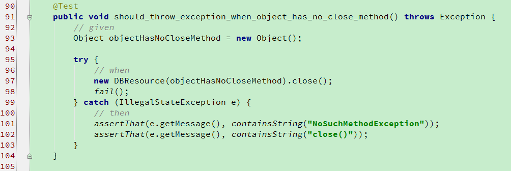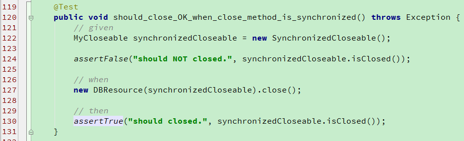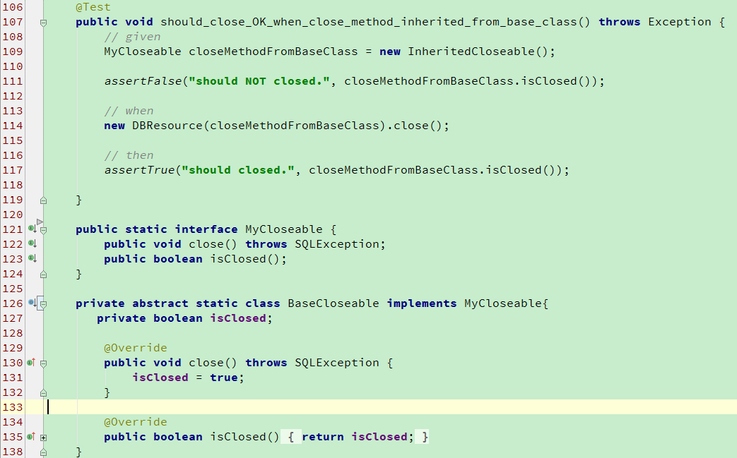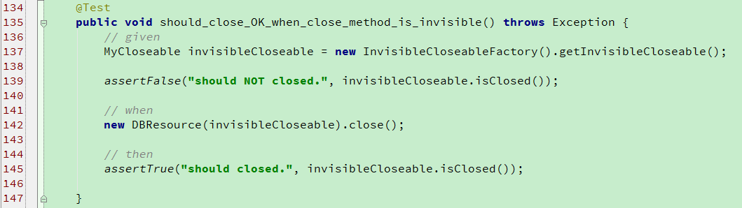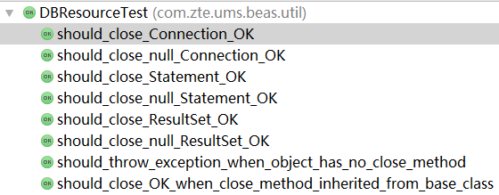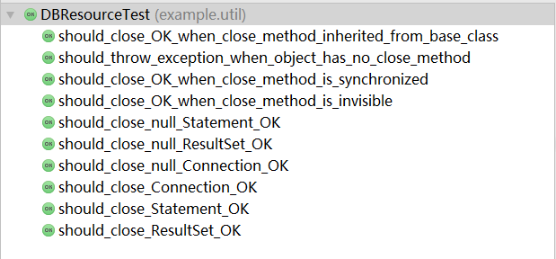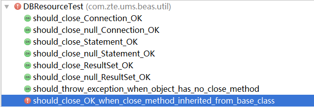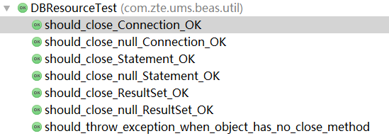 所有的测试用例都是通过的,在每个通过的测试用例中,resource的close()都能够正确获取并关闭。