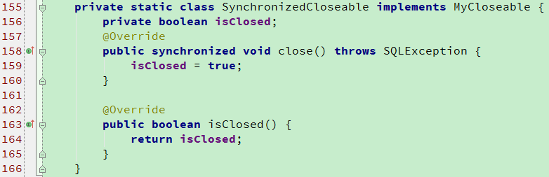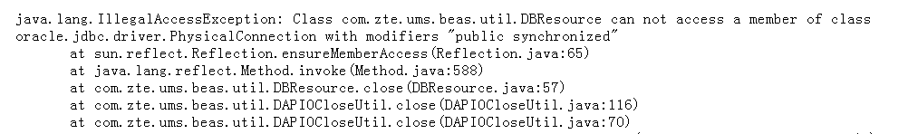 太坑die了,close()的确没问题,public synchronized我们也能支持,但是PhysicalConnection竟然是package可见,怪不得DBResource无法访问到,而且jdk的异常信息也有bug,没有针对这种情况的提示。