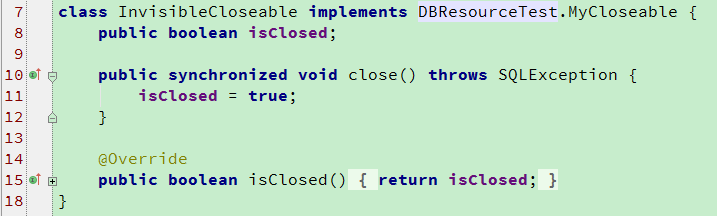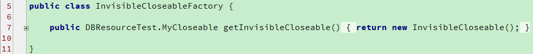 然后,在package example.util.invisible中再生成一个InvisibleCloseableFactory用来实例化InvisibleCloseable,并暴露给DBResourceTest使用。