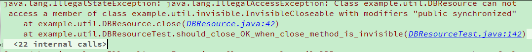 首先,需要在测试代码目录的一个单独package example.util.invisible中定义一个package可见的InvisibleCloseable,用来模拟PhysicalConnection。