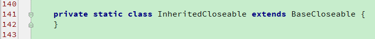 于是,立即增加测试用例,将close()从父类继承的场景模拟出来:
